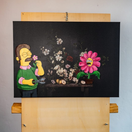 Gollum incontra Burns la storia mai raccontata. In questa fantastica opera è raffigurato il signor Burns trasformato nel personaggio di Gollum sullo sfondo del Signore degli anelli, intento a proteggere il suo tesoro.